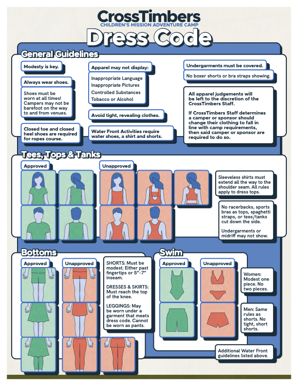 CrossTimbers has 5 dorms that each have numerous rooms with 12 beds. Boys and girls have separate dorms. A sponsor from North Pointe will always be assigned a room with North Pointe children. A minimum of two sponsors will be assigned to each room. It is a possibility that North Pointe will share a room with another church.