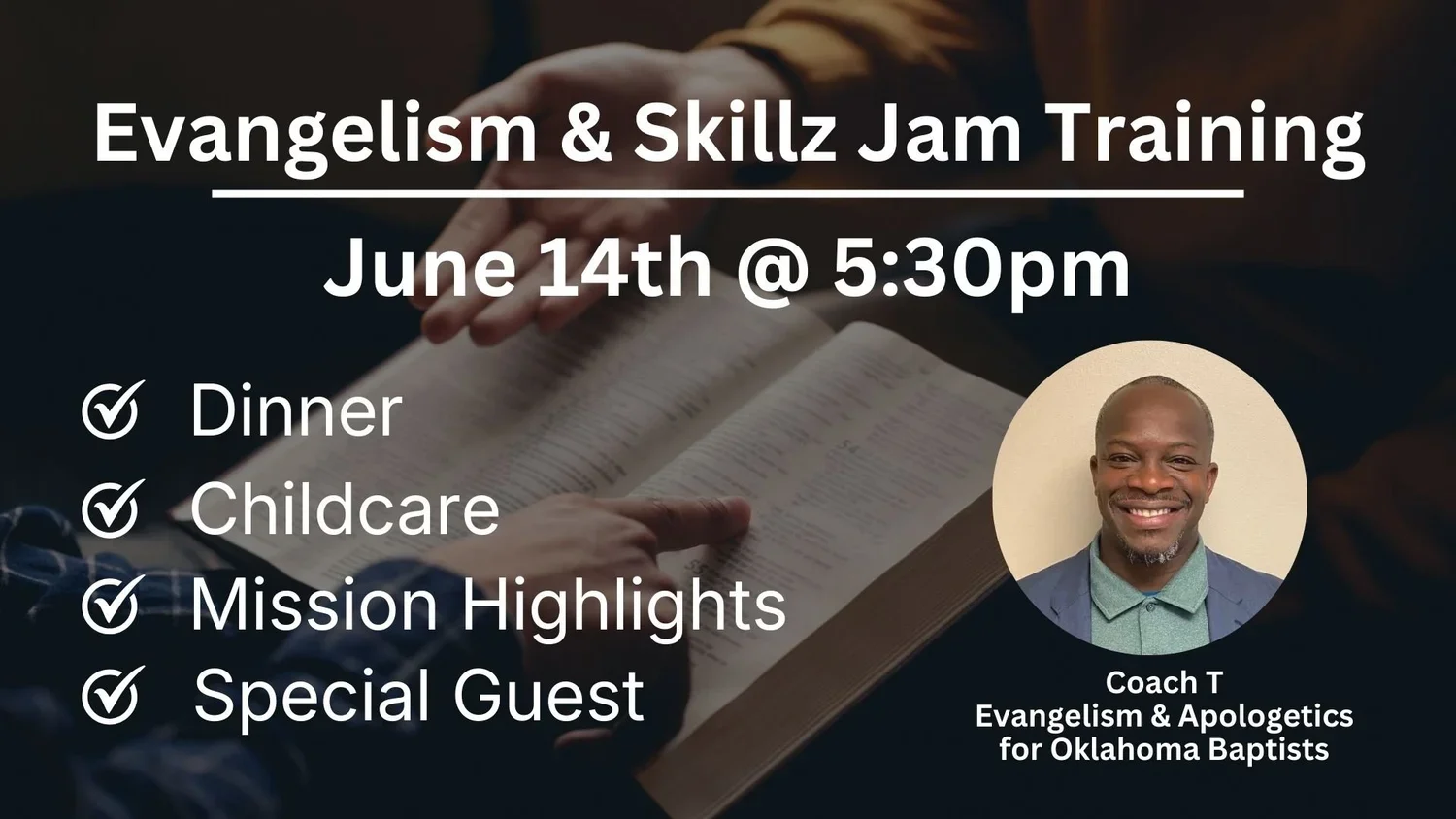 Join us for a night of learning about opportunities to serve on mission and how to share your faith! We'll be Joined by Coach T, who specifically works to help equip Christians on how to share the Gospel. In addition, our annual leader training for Skillz Jam will take place!